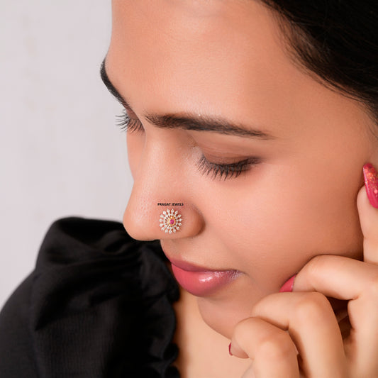 FLOWER NOSEPIN 18k Indian Nose Stud Traditional Nose Stud Indian Nose Ring Diamond Nose Piercing NP0335