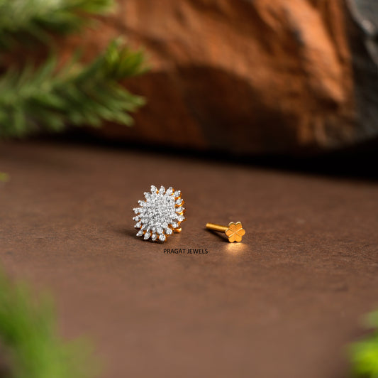 Diamonds Cluster Nosepin 18K Gold Indian Nose Stud Traditional Nose A precious Gift for The Percious One.