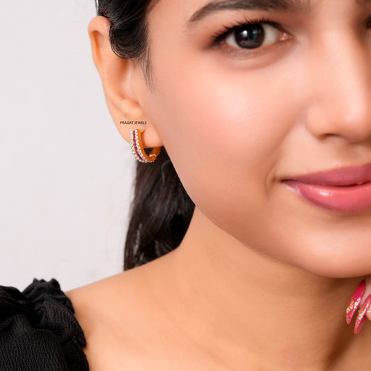 Ruby Diamond Earring 14K Yellow Gold, Daily Wear Earring