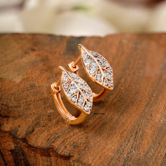 Leaf Gold Earrings With Brilliant Cut Diamond,Handcrafted With Love.