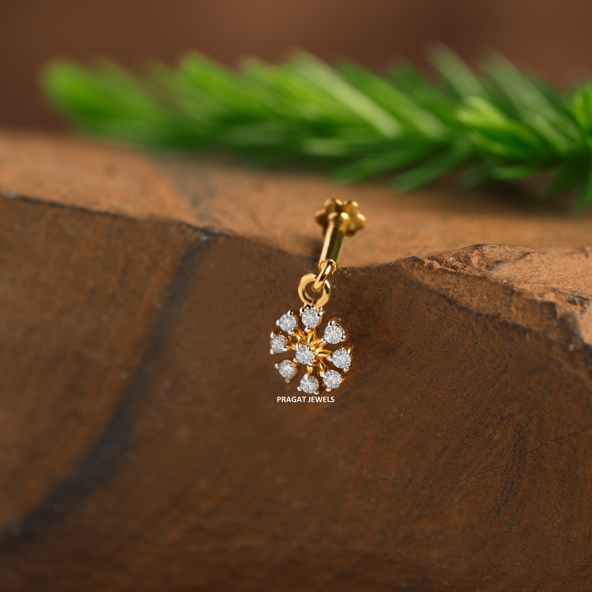 18K Gold Diamond Flower Stud Helix Bugadi Tragus, Conch Piercing