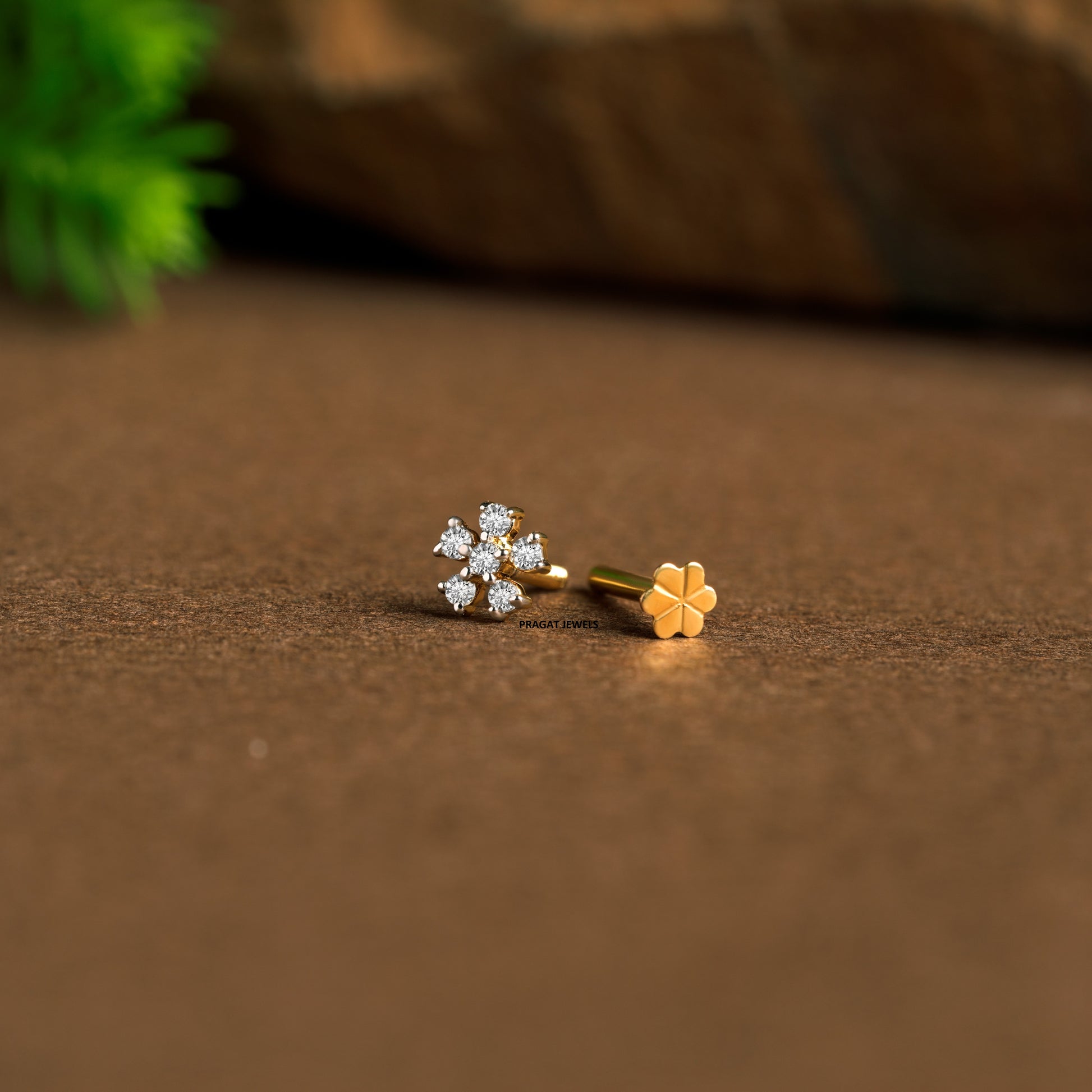 18K Gold Diamond Nose Pin β Delicate 6 stone Nosepin| Elegant Nose Jewelry for Women
