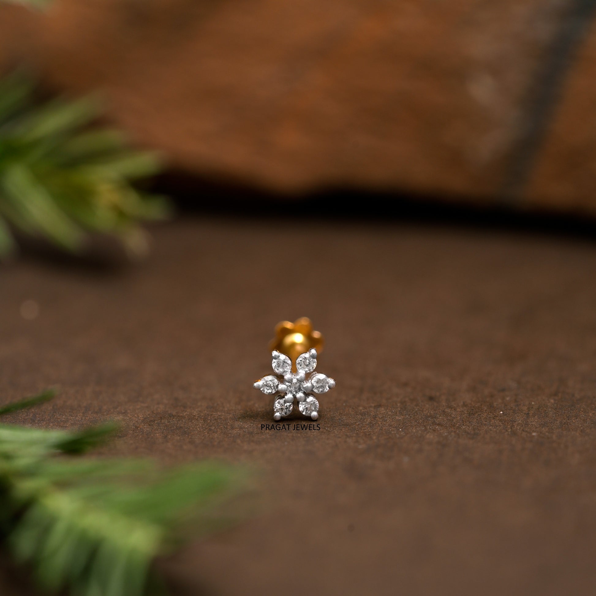 18K Gold Nosepin with 7 Natural Diamonds β Floral Design Diamond Stud Nose Ring for Women