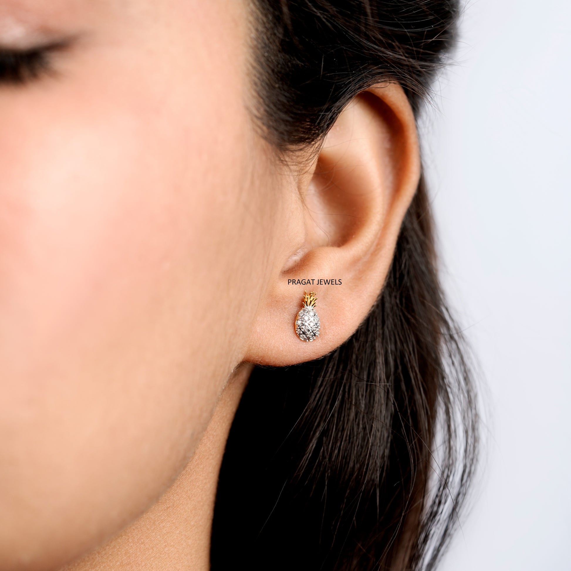 Diamond Pineapple Stud Earrings/Mini Pineapple Diamond Ear Stud/Golden Crown Pineapple Studs NP1233