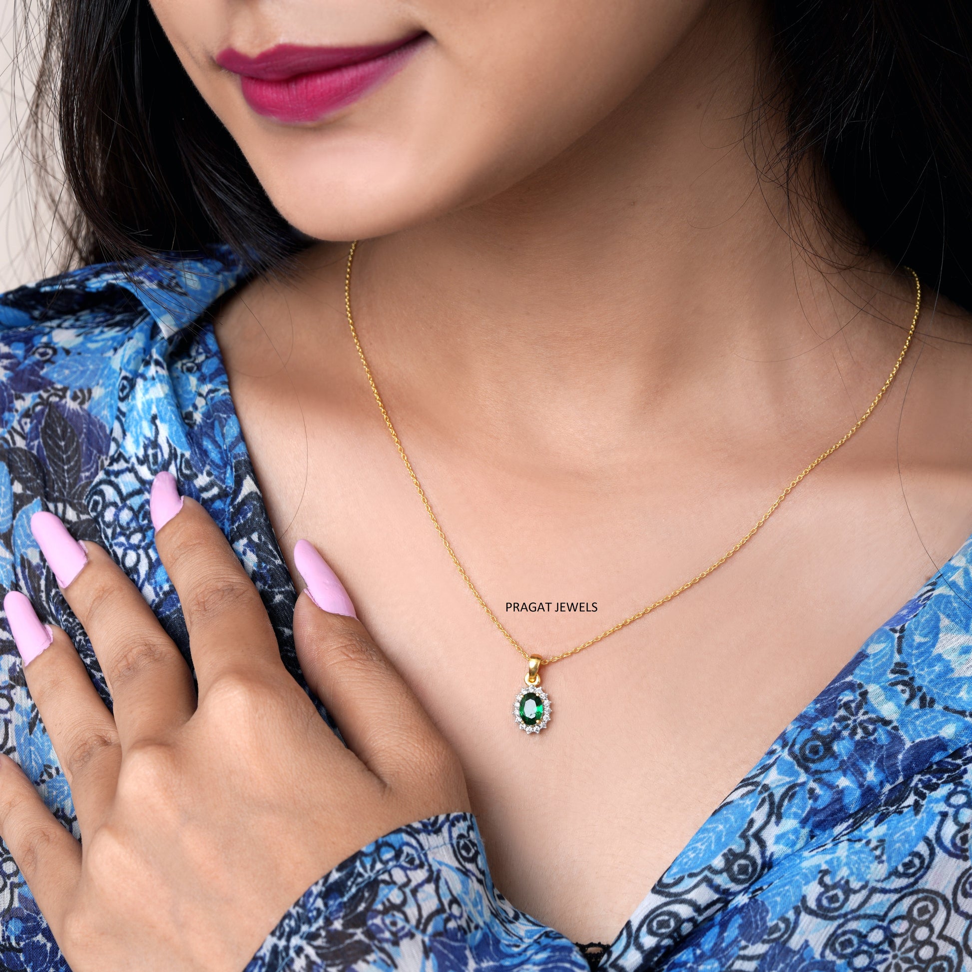 Ovel Diamond Halo Pendant Anniversary,Birthday Gift Simple Pendant for Wife